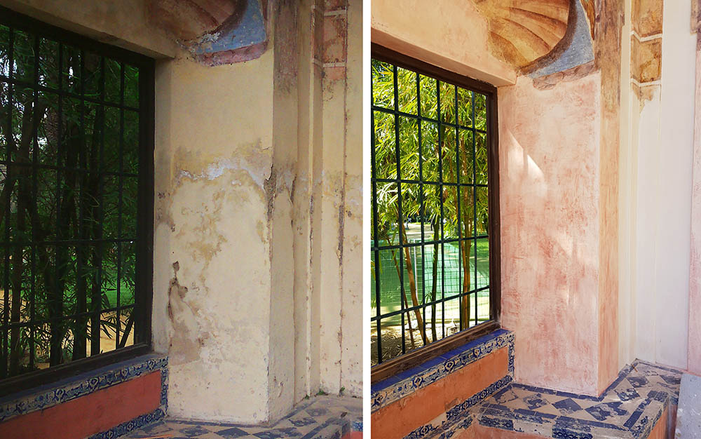 - Reparación de revestimientos con morteros de cal técnicamente controlados con acabado de estuco como tuvo en su origen. Se emplean técnicas tradicionales actualizadas.