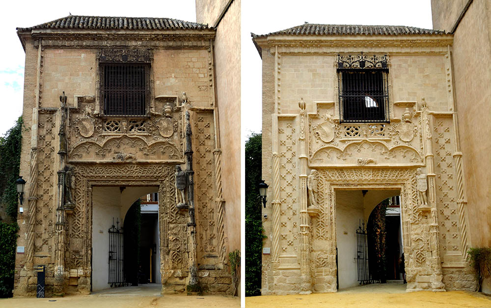 (Texto extraído de “Restauración de la Puerta de Marchena del Real Alcázar de Sevilla. Respeto a la Huella del Tiempo”. María Dolores Robador. Apuntes del Real Alcázar, número 15)