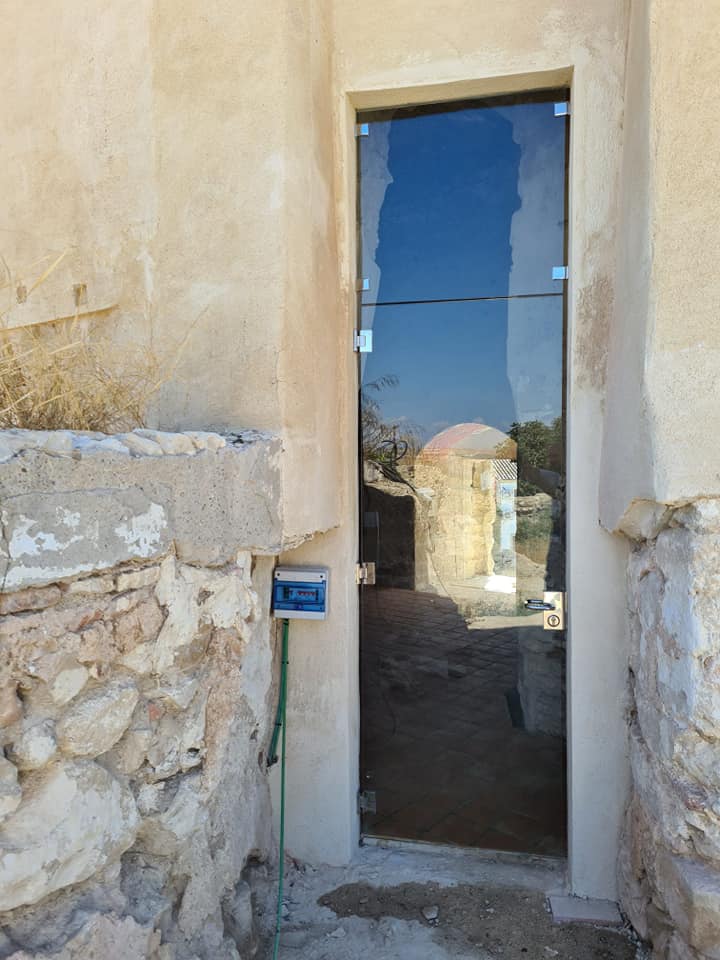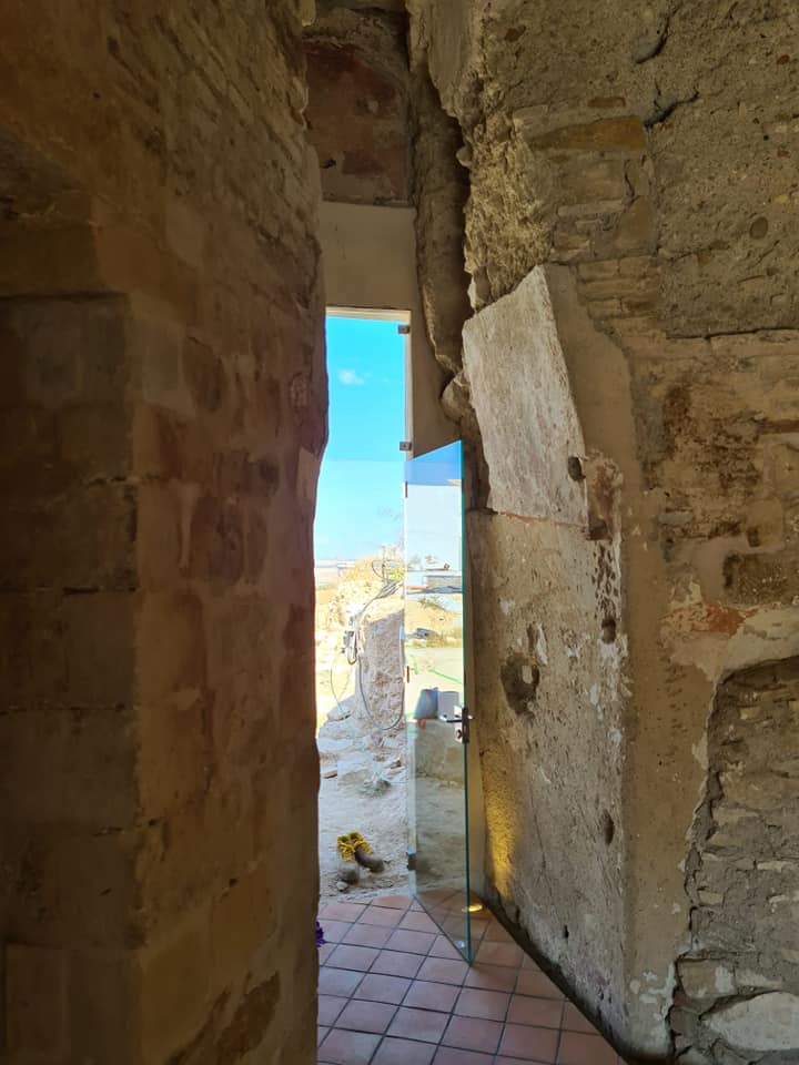 - Modificación de la entrada a la torre, a fin de que sea más accesible, colocando puerta metálica a medida. Instalación en ventana de carpintería pivotante de vidrio sin marcos. Ambas carpinterías, tanto puerta como ventana, permiten la ventilación natural para evitar la acumulación de humedad en el interior de la torre.